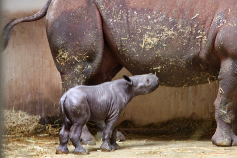 Nashornkalb im Schaubereich