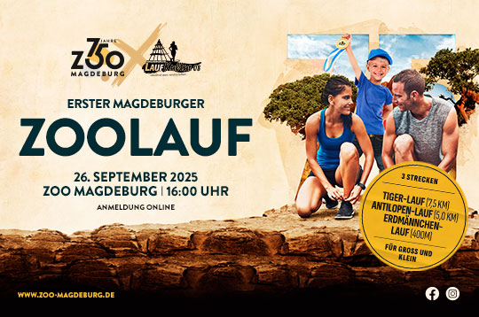 Mit dem 1. Magdeburger Zoo-Lauf am 26.09.2025 bekommen große und kleine Lauffreunde die Gelegenheit, den Spaß am Laufen in einer exotischen Laufumgebung damit zu verbinden, gleichzeitig etwas Gutes für den Artenschutz zu tun. Ein Teil der Einnahmen fließt in die Unterstützung internationaler Artenschutzprojekte.