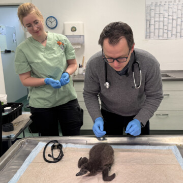 Magdeburg, 20. Februar 2026. Flauschig-grau ist das Flaumkleid des jüngsten Nachwuchses im Zoo Magdeburg: ein Brillenpinguin. „Das Küken hatte keinen einfachen Start ins Leben. Durch die langanhaltenden Nachtfröste hat das Pinguinpärchen das Nest verlassen, das Ei wurde von den Tierpflegern gerettet und in den Brüter verbracht. Es schlüpfte am 20. Januar 2026 im Brutkasten und wird aktuell von der Revierleiterin Annett Schwabe aufgezogen. Seinen Artgenossen im südlichen Afrika hingegen stehen rasant am Abgrund des Aussterbens und kämpfen ums Überleben“, erklärt Zoodirektor David Pruß, Ph.D. Die Brillenpinguin-Population ist in den vergangenen drei Jahrzehnten um rund 80 Prozent eingebrochen auf 19.800 Brillenpinguine (Quelle: IUCN-Redlist, 4.7.2024). Die Weltnaturschutzunion (IUCN) stufte diese Tierart im Jahr 2024 vom Bedrohungsstatus stark gefährdet auf vom Aussterben bedroht hoch.