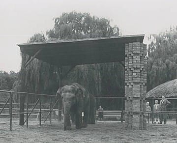 In den 1960er Jahren konnte man Tiere noch kaufen und sich anschließend erst Gedanken über ihre angemessene Haltung machen. Exemplarisch hierfür sind die Anfänge der Elefanten- und Schimpansenhaltung im Magdeburger Zoo. Die erste Asiatische Elefantenkuh „Sonja“ wurde 1960 begeistert von den Magdeburgern empfangen. 1961 verließ Klaus-Günther Witstruck den Zoo, um das Direktorat in Halle zu übernehmen; an seine Stelle rückte der vormalige wissenschaftliche Assistent des Tierparks Berlin, Dr. Manfred Bürger. Direkt zu Beginn seiner Amtszeit konnte sich der Zoo über die Ankunft seiner zweiten asiatischen Elefantenkuh Kati freuen, die nun der im Vorjahr nach Magdeburg gekommenen Sonja Gesellschaft leistete. Für die Magdeburger waren die Elefanten damals natürlich eine Sensation – mit 389.000 Besuchern erzielte der Zoo 1961 einen neuen Rekord. Heutzutage undenkbar waren allerdings die Haltungsbedingungen der damals noch jungen Elefanten. Tagsüber wurden sie von ihren Pflegern durch den Zoo geführt und so den Besuchern präsentiert, um abends in Notunterkünften auf dem Wirtschaftshof untergebracht zu werden. Im darauffolgenden Jahr baute der Zoo wenigstens eine Art „Außengehege“ auf dem Gelände, auf dem heute die Giraffen stehen. Doch es sollte noch bis 1967 dauern, bevor die Elefanten ein eigenes Haus bekamen – und das in buchstäblich letzter Minute, denn inzwischen passten sie kaum noch durch die Türen ihrer Notunterkunft. Dass es überhaupt gelang, in dem jungen und kleinen Magdeburger Zoo das erste große Warmhaus der DDR zu errichten, war geradezu eine Sensation und kann aus heutiger Sicht nicht hoch genug eingeschätzt werden. Gleichwohl entspricht das Dickhäuterhaus inzwischen schon lange nicht mehr den Haltungsrichtlinien für seine Bewohner.1970-1980