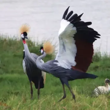 Kronenkraniche erreichen eine imposante Flügelspannweite von zwei Metern. Sie leben südlich der Sahara in Afrika. Als Glücksboten und Wächter über die Gesundheit der Menschen und des Viehs werden sie in vielen Kulturen der Sahelzone verehrt. Als besonders talentierte Heuschreckenjäger helfen Kronenkraniche, die Entstehung riesiger Wanderheuschreckenschwärme, die ganze Ernten vernichten können, einzudämmen. Vogelbeobachter aus aller Welt reisen nach Afrika, um diesen imposanten Vogel in seinem natürlichen Lebensraum zu erleben. Nicht zuletzt trägt der Kronenkranich dadurch zum Einkommen vieler afrikanischer Familien bei.