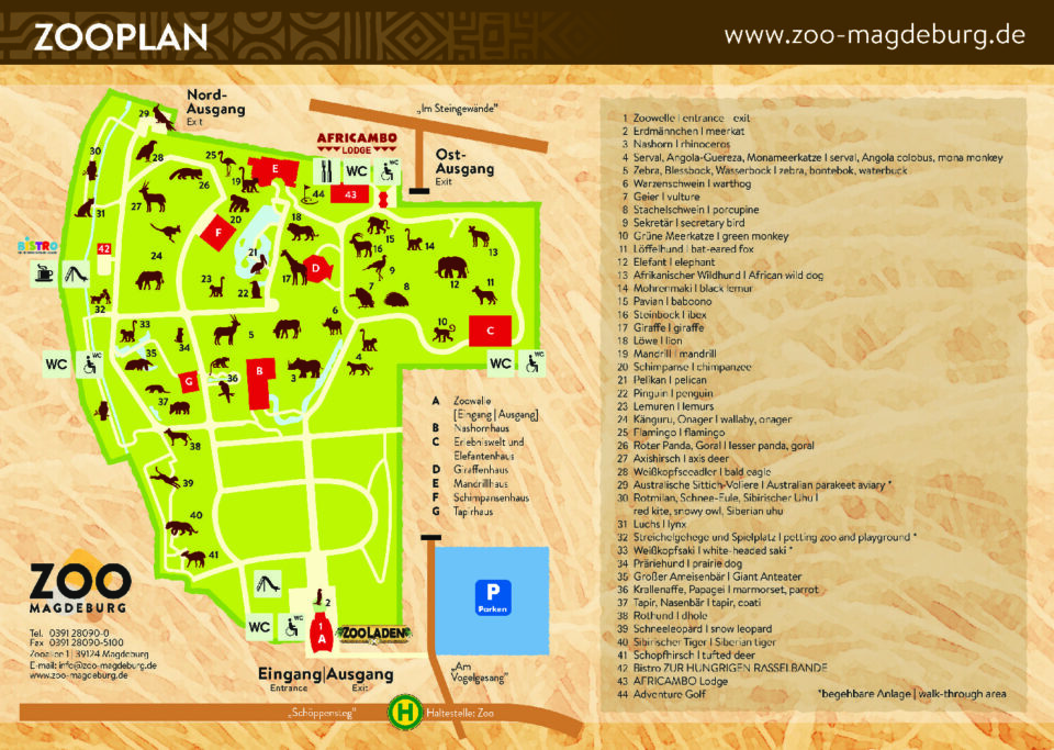 Bei Nutzung eines Navigationsgerätes geben Sie Schöppensteg 11, 39124 als Zieladresse an, da die neue Adresse Zooallee in vielen Geräten nicht zu finden ist.